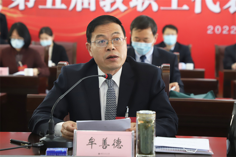 邵长胜作《学院财务报告(草案)》,报告指出,2021年财务工作圆满完成五届一次教代会提出的目标,2022年预算提出“四个突破”,制定四项措施,集中财力支持学校重点任务。