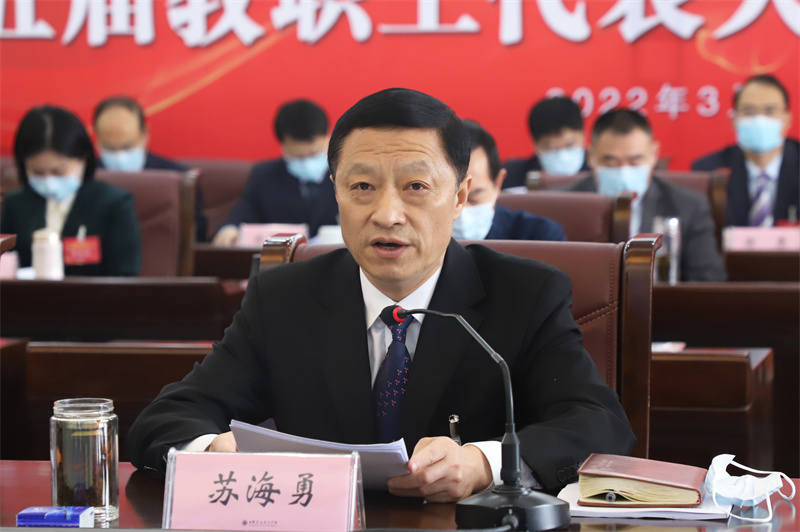 苏海勇以《凝心聚力促发展 真抓实干创业绩 努力开创学校事业发展新格局》为题,向大会作工作报告,从9个方面对2021年工作进行了回顾总结,从12个方面对2022年工作进行了安排。