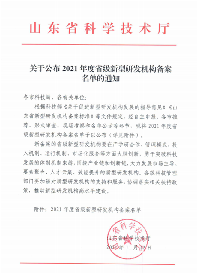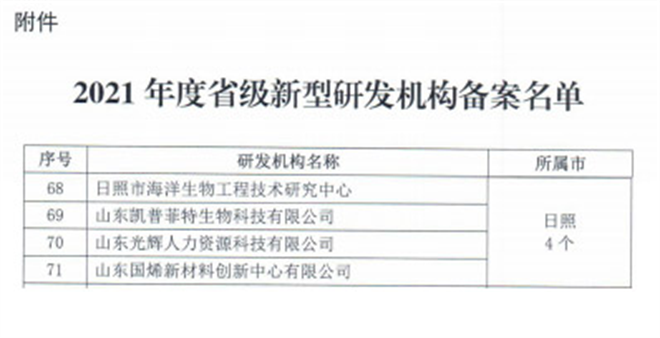 近日,山东省科技厅公示2021年度省级新型研发机构备案名单,我校日照市海洋生物工程技术研究中心入选。
