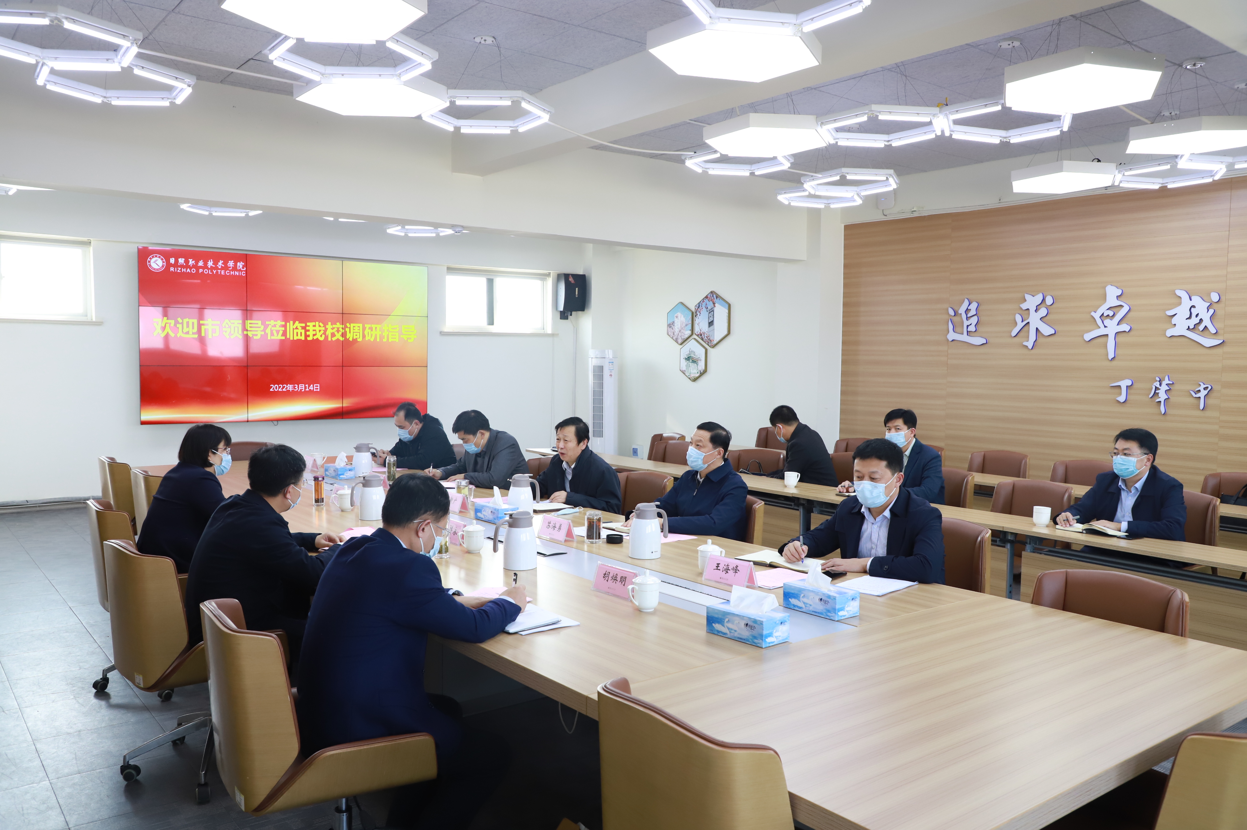 3月14日下午,日照市副市长吕祥永,市委教育工委常务副书记、市教育局党组书记、局长孙燕,市政府驻北京联络处副主任胡焕明一行来我校调研,听取学校工作汇报,并实地考察了校园。党委书记冯新广,党委副书记、院长苏海勇,党委委员、副院长邵长胜等陪同调研并参加相关活动。