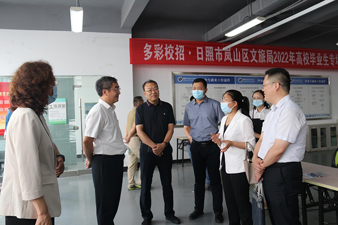 招聘会期间,学校党委书记冯新广接待了参加招聘会的张磊、张玉娜及六家企业负责人,并就促进我校学生更多留在日照,更多到岚山区就业创业进行深入交流。