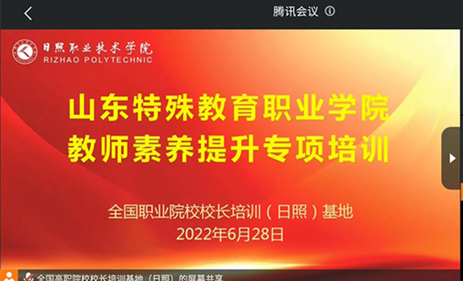 6月28日,我校承办的教师素养提升专项培训正式开班,山东特殊教育职业学院的60余名教师相聚云端,开始了为期3天的线上培训。此次培训是全国职业院校校长培训(日照)基地2022年开启的首期培训。