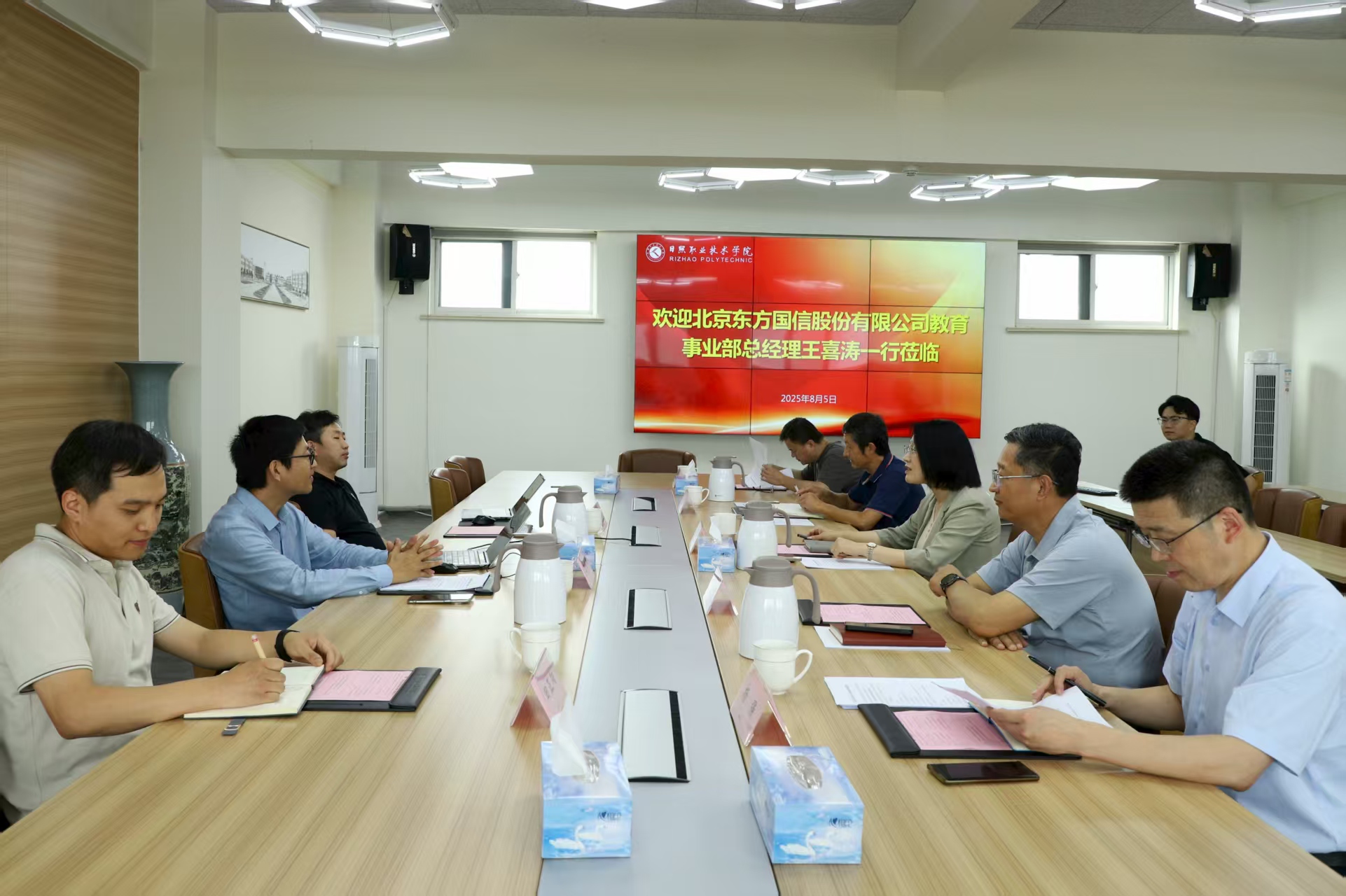 8月5日,北京东方国信股份有限公司教育事业部总经理王喜涛、市场总监田正阳、工艺部工程师仝占国一行到访学校,就工业互联网实训室二期建设及产教融合实践中心规划展开深入交流,标志着双方在深化产教融合、服务国家战略上迈出关键一步。