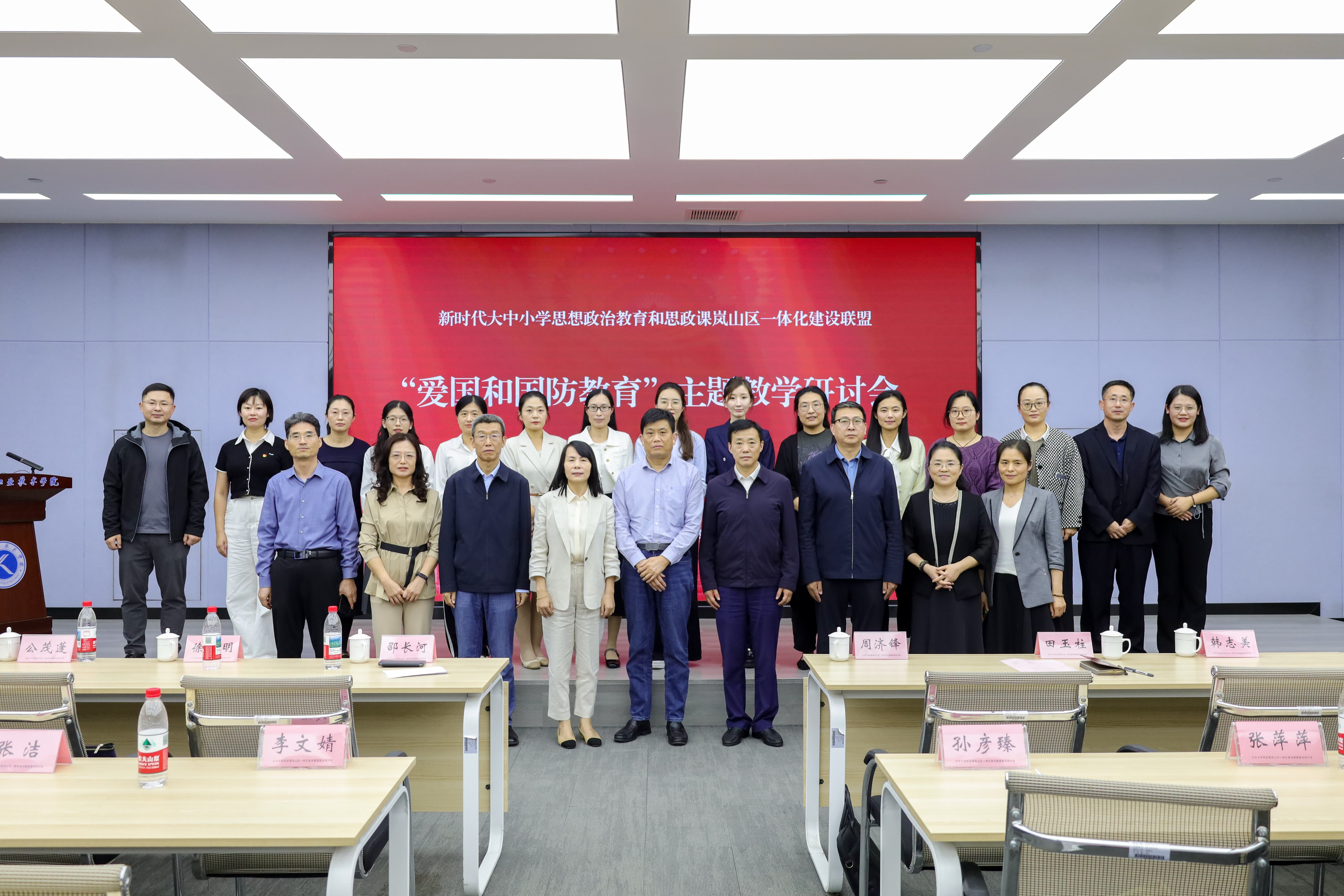 10月14日下午,新时代大中小学思想政治教育和思政课岚山区一体化建设联盟“爱国与国防教育”主题教学研讨会在日照职业技术学院天润楼1楼会议室举行,岚山区教育与体育局有关负责同志、学校思政部班子成员出席会议,岚山区大中小学各学段思政课教师代表、思政教育工作人员代表及学校思政部全体教师参加会议。