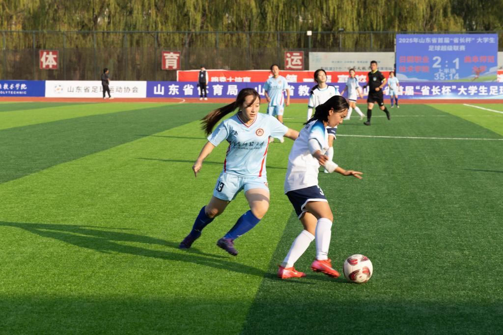 11月18日,我校女子足球队客场战胜山东工业职业学院女子足球队,标志着学校在山东省首届“省长杯”大学生足球超级联赛第一阶段赛事圆满结束。学校男子、女子足球健儿发扬学校追求卓越的精神,奋勇拼搏,成功突围小组赛,分别晋级男子省十六强、女子八强,展现了学校竞技体育的蓬勃发展和师生团结奋进的精神风貌。