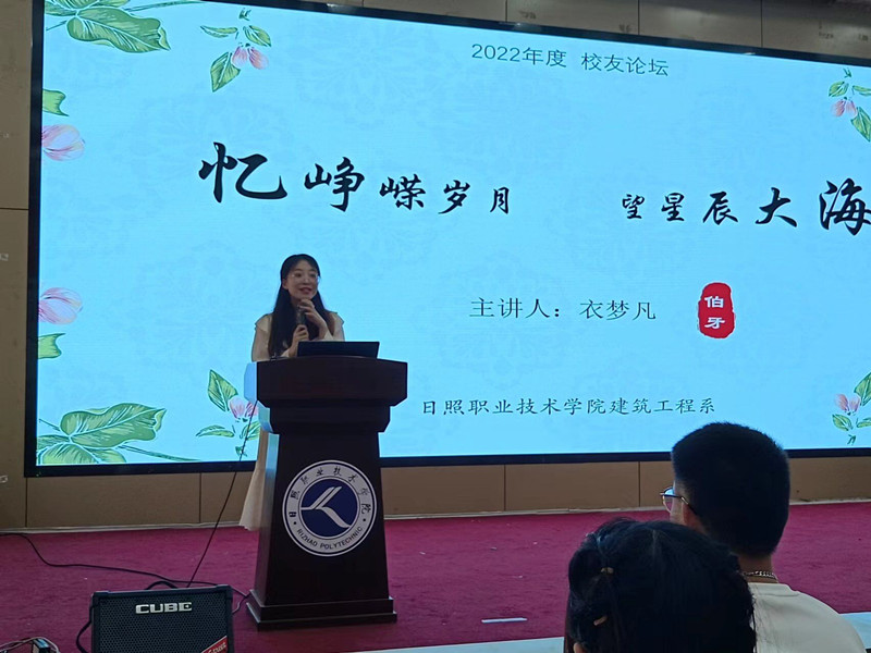 作为建筑工程系优秀学生干部、优秀毕业生代表,回望过去,她为学弟学妹们分享曾经在日职及伯牙艺术团的往事;展望未来,她为学弟学妹们答疑解惑,分享专升本的经验及就读本科期间的趣味生活。在演讲结束后,衣梦凡与伯牙艺术团现成员共同登台演出,交流声乐表演技巧。最后在衣梦凡及伯牙艺术团成员优美的歌声中落幕。