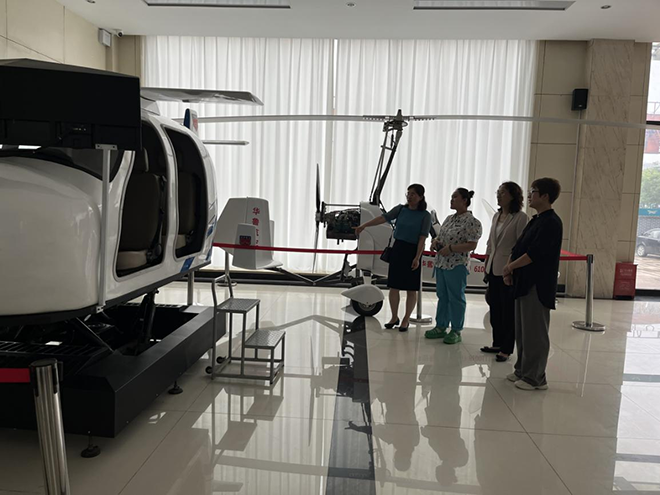 座谈结束后,李侠一行在陈鹃的陪同下参观了华鲁航空学校实训中心。