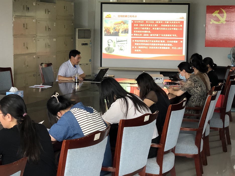 6月27日下午,公共教学部党总支书记万修亮在天润楼501会议室讲“坚定信仰、提高站位,以实际行动迎接党的二十大胜利召开”专题党课。公共教学部全体党员教师参加。