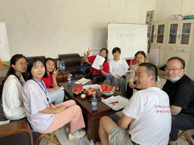火红七月,青春追梦。连日来,人文与旅游系2022年暑期乡村振兴社会服务实践活动正在日照市陈疃镇如火如荼地开展,实践团师生们分成7个小组,在各村开展入户调研活动。7月9日,人文与旅游系党总支书记李侠一行来到陈疃镇,看望慰问乡村振兴社会服务实践团的师生,为冒着高温酷暑仍在坚守岗位的师生送去关怀和问候。