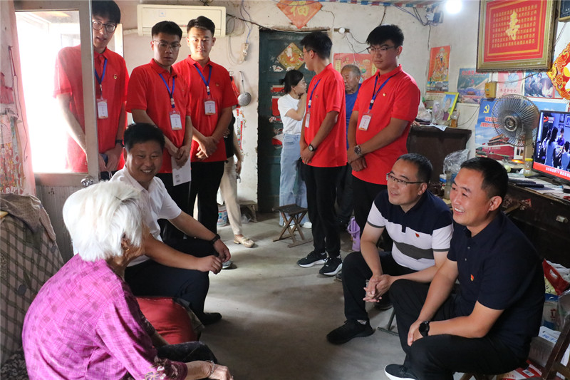 实践团到达莒县小店镇后,林德强首先和实践团一行进行了座谈交流,他向实践团介绍了小店镇的基本情况,为实践团规划了学习参观和调研场所。随后实践团前往鞠家官庄村和魏家剁庄村慰问中华人民共和国成立前老党员并带去了米面油等慰问品,通过同老党员同志进行交流,深切地了解了老党员的入党往事和她们对党忠诚的信念,努力学习了老党员的先进思想,对祖国、对工作的热爱,做人做事讲原则的宝贵品质。
