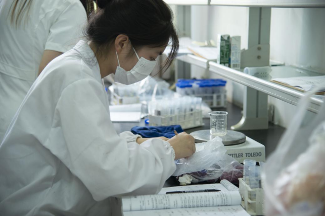 志愿服务队的同学们在前期已分别参加过省赛农产品质量安全检测技能大赛和化学实验技术技能大赛训练,他们结合不同赛项的特点,共参与了气相色谱检验岗、液相色谱检验岗、液质联用检验岗、微生物检验岗、元素分析岗、理化检验岗等六个岗位的食品安全检验检测工作。其中气相色谱检验岗主要负责水果、蔬菜和茶叶中农药残留检测;液相色谱检验岗主要负责样品中安赛蜜、罗丹明B、孔雀石绿等食品添加剂、非法添加物的检测;液质联用检验岗主要负责样品中兴奋剂:克伦特罗、莱克多巴胺、沙丁胺醇、特布他林、兽药残留:甲氧苄啶、磺胺类、氯霉素等的检测;微生物检验岗主要负责样品中指示性菌及食品致病菌的检测;元素分析岗主要负责样品中铅、镉、汞、砷等金属元素的检测;理化检验岗主要负责酸价、过氧化值及营养成分检测,数据处理等工作,目前已累计完成检验400余样品,2500余项次。