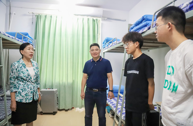 在学生宿舍,系党总支书记熊文生与同学们亲切交谈,十分关切地询问了每位同学是否吃上了月饼,并将节日的祝愿与精心准备的月饼一同送给学生。随后详细了解了学生们返校之后在学习和生活中遇到的实际困难,认真地倾听了学生对疫情常态化防控条件下的校园管理、服务提出的意见和建议。提醒同学们要注重加强体育锻炼,养成良好的生活作息习惯,共同营造一个安全、文明的宿舍生活环境。希望同学们理解、支持、配合学校的疫情防控措施,自觉遵守纪律、落实疫情防控要求、保持学习热情,展现大学生的自律担当。