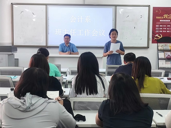 为保障新学期学生各项工作顺利进行,提高班主任班级管理水平,进一步做好学生安全日常管理工作,9月22日下午,会计系在海润楼S404召开班主任工作会议,安排部署学生管理加强月工作。会议由党总支副书记朱华东主持,副主任沈全芳、团总支书记刘婷和全体班主任、辅导员参加会议。