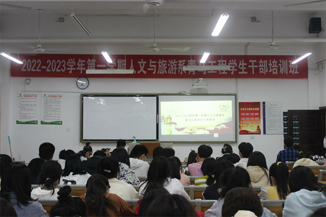 为了加强新干事对我系学生会工作的全面了解,提高整体新干事的综合素质,为学生会工作的开展打好基础,更好地为全系学生提供服务,9月20日晚,人文与旅游系在地滋楼C118教室举行“2022-2023学年第一学期青马工程学生干部培训班”开班仪式,学工科科长张伟,学生会骨干及2022级全体学生会成员参加了仪式。