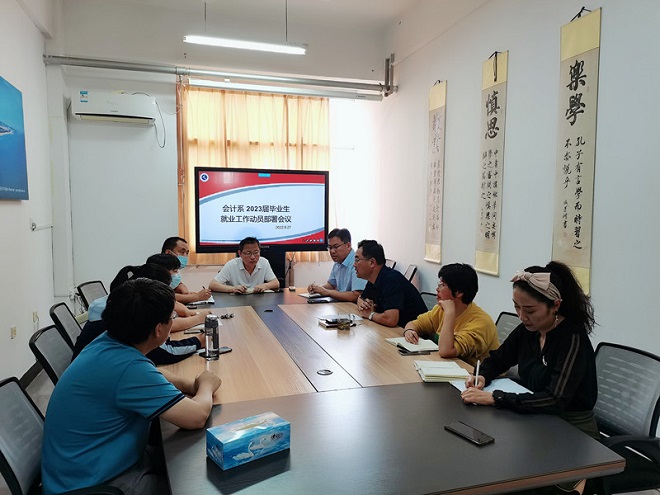 9月27日下午,会计系在海润楼N407召开2023届毕业生就业工作动员部署会议,会议由党总支副书记朱华东主持,系党总支书记訾波、毕业班全体班主任和就业辅导员参加会议。