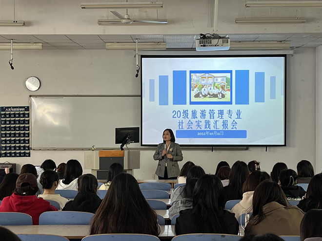 10月11日下午,人文与旅游系在地滋楼B203举行2020级旅游管理专业学生暑期社会实践汇报活动。旅游管理专业全体教师和2020级全体学生参加活动。