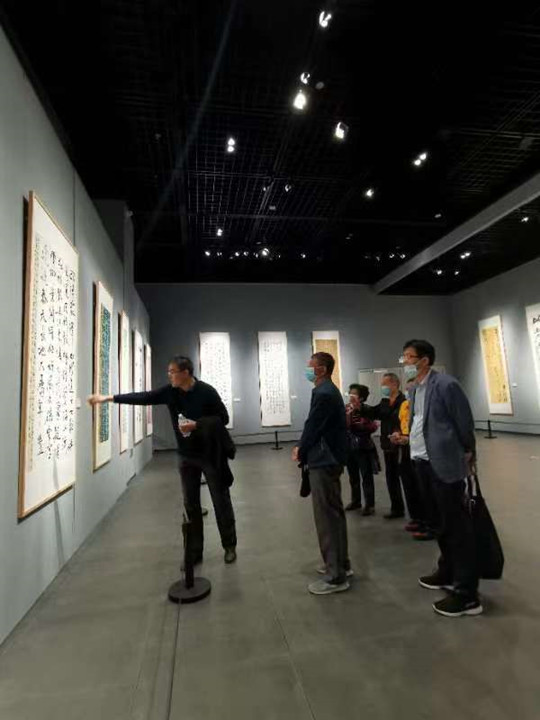 学员们在书法老师郭凯的带领下,井然有序地参观学习。展览作品涉及革命历史、风土人情、社会发展、脱贫攻坚、生态文明等各个方面,多方位、多角度表现了新时代党和国家重大成就和宝贵经验,展现了人民的奋斗风采和多彩生活。在郭凯老师的指导下,大家对作品进行了专业的赏析,主题鲜明、内容丰富的作品深深地吸引了学员们,令学员们大开眼界。学员们或驻足观赏,或品评讨论,对展出的作品赞叹不已。