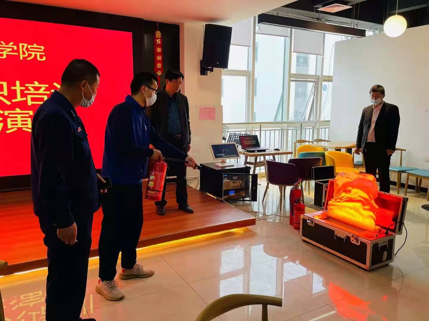 为落实好《山东省教育厅关于加强秋冬季消防安全工作通知》(鲁教安函〔2022〕50 号)中强化教育演练,提高消防安全风险防范能力,切实增强师生员工消防安全意识等要求,10月26日下午,总务处组织三个餐厅50余名员工在7#楼餐厅三楼举行消防安全知识培训会。会后,在学校保卫处指导下组织开展了消防应急疏散、电子灭火器模拟操作演练。