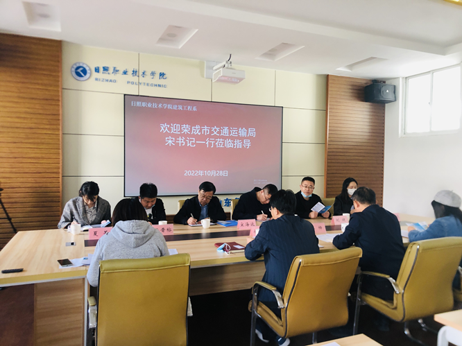 10月28日上午,建筑工程系党总支副书记、主任徐锡权在海润楼N203接待荣成市交通运输局党组副书记、副局长宋海波一行,双方就“招才引智”进行洽谈。党总支副书记乔梓,专业主任李颖颖和田晶莹老师参加座谈。