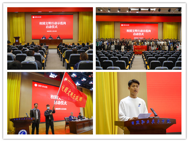 为进一步加强学生文明习惯养成,有效发挥学生“自我教育,自我管理,自我服务,自我监督”作用,11月10日上午,学校在图书馆二楼报告厅举行了“校园文明行动示范岗”启动仪式,各系部学生工作科科长、校园文明示范岗学生代表,学生工作处有关人员参加仪式。