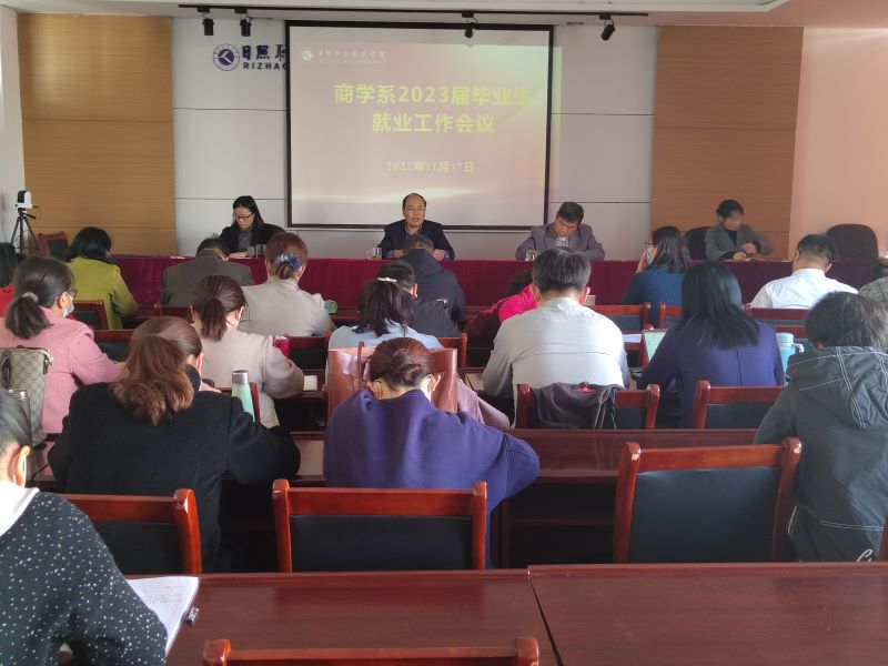 为落实教育部、人力资源和社会保障部2023届全国普通高校毕业生就业创业工作网络视频会议精神,全面做好2023届毕业生就业创业工作,11月17日下午,商学系召开2023届毕业生就业工作会议,党总支书记牟宗国,党总支副书记李运昌,副主任申作兰、刘梅,各教研室主任,毕业班班主任及全体就业指导教师参加会议。