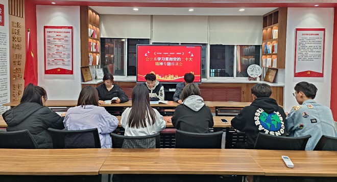为庆祝党的二十大胜利召开,将学习宣传贯彻党的二十大精神作为学生会当前和今后时期的首要政治任务,推动学生干部用新时代党的创新理论武装头脑、全面提高学生干部的思想政治觉悟。会计系于11月17日在海润楼N417组织学生会主要干部开展“学习宣传贯彻党的二十大精神”专题座谈会。