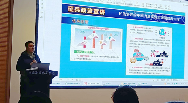 根据国家2022年在应届大学毕业生中扩大应征入伍的政策,创意设计系重点针对2023届毕业进行宣传动员,不仅能提高应征入伍宣传的效果,还能提高应届毕业生就业质量,鼓励学生投身军营、保家卫国,为学生的人生历练和今后的发展提供一个最佳的机遇。(创意设计系 梁成军)