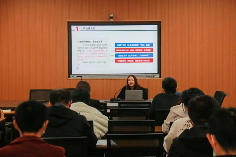 培训会上,周末首先分析了我校学生心理健康状况,带领大家认识了心理危机的种类及产生的原因,并结合心理危机学生案例从认识心理危机、班主任的角色定位和工作职责、学生心理危机研判、学生心理危机的干预、心理危机干预中的困境与应对等五个方面,对我系心理危机干预工作做培训指导。周末通过再现自身多年学生管理工作中的案例,结合工作实际,分析诠释案例,深入剖析学生心理问题,引导班主任们要科学认识心理健康、科学对待学生心理问题,同时呼吁班主任进一步关注学生心理问题,并进一步明确将排查关注心理问题学生作为班主任的工作的重要内容,通过各类心理问题学生的不同特点及时捕捉学生的信息。并通过特点制定“一人一策”应对策略,采取的不同心理援助。