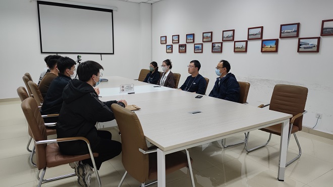 25日下午,通用航空系安排专车由教学科长单洪伟和班主任张万昭老师带领学生到日照飞机工程有限公司报到。公司人事部卢鹏飞经理与单洪伟就实习工作进行了对接。卢鹏飞详细介绍了本次岗位实习的相关情况以及接下来的具体安排等。接下来,学生将在企业进行为期6个月的轮岗实习。在此期间,学校指导教师和企业师傅将对学生共同进行指导和管理,努力提升学生的技能和职业素养。