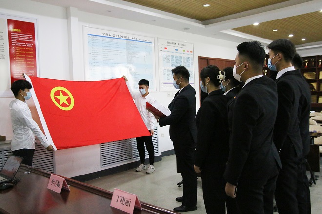 为学习贯彻党的二十大精神,加强中国共产主义青年团队伍建设,12月2日,现代汽车系在山润楼二楼会议室举行2022年下半年新发展团员入团仪式,系团总支书记朱杰、全体辅导员老师及系部新老团员参加仪式。