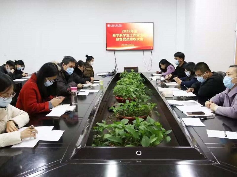 12月1日,商学系学生工作党支部在海润楼N306召开全体党员大会,讨论接收孟祥龙、陈海莹、宋玉、刘秀利、李鹏、郭奕铭、王志宏7位同志为中共预备党员的问题。会议由学生工作党支部书记范伟军主持,学生工作党支部全体党员、党员发展对象及其入党介绍人参加了会议。