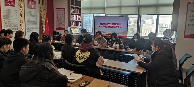 12月2日,会计系学生工作党支部召开讨论接收预备党员大会,会上对15名发展对象接收为预备党员事宜进行讨论,全体党员参会,支部书记刘婷主持会议。