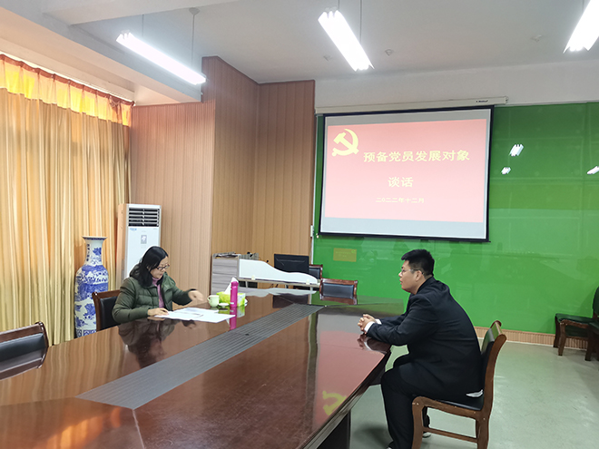 为进一步落实发展党员谈心谈话制度,了解预备党员发展对象的思想动态,确保党员发展质量,12月6日,按照学校党委安排,人文与旅游系党总支副书记陈玉香与现代汽车系15名学生预备党员发展对象进行了谈话。学校纪委监察办公室李文娜担任现场督导,人文与旅游系组织员郑莉现场记录。
