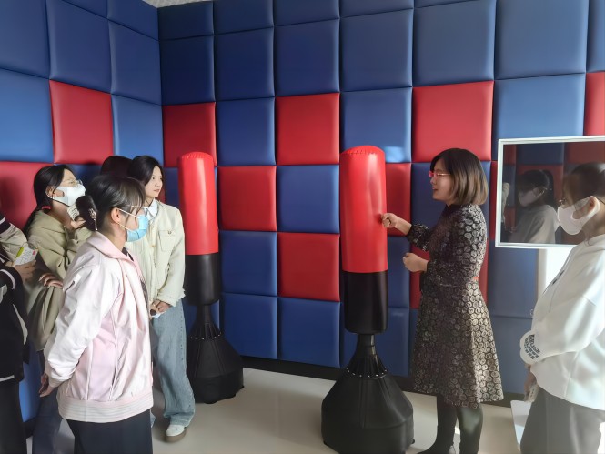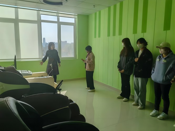 大学生心理健康中心教师司申丽和李尚儒老师担任引导员,为同学们介绍心理中心的职能、心理咨询的预约流程及保密原则、心理健康教育活动的开展情况,同学们不仅参观了预约接待区、心理咨询室、音乐放松室、团体辅导室、沙盘游戏区等功能室,还在心理老师的带领下体验了团体心理辅导、团体沙盘游戏和音乐放松椅。在团体辅导中,学生们通过合作游戏认识自我与他人,了解团体心理辅导的意义和组织形式;在团体沙盘游戏中,学生们乐在其中,感受了特殊的心理表达方式;在音乐放松室,学生们通过测试了解自己的压力情况,学会用健康合理的方式放松身心。