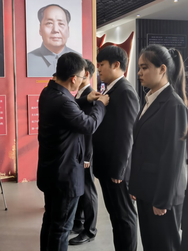 宣誓仪式在庄严的《国际歌》中拉开帷幕。学生支部宣传委员林见松同志宣读参加入党宣誓的预备党员名单,黄贤刚同志为9名预备党员佩戴党员徽章,9名预备党员在组织委员殷会聪同志的领誓下,面对鲜红的党旗,高举右拳,庄严宣誓。宣誓结束后,预备党员代表徐红昕同志、入党积极分子代表姜昕悦同志分别发言,表达了不断努力加强政治基础理论学习,坚定理想信念,不断提高自身素质,奋发进取,争做合格党员的决心和信心。进行入党宣誓,对新党员来说,是最实际、最生动的党的观念教育,也是进行自我教育的一种很好形式。入党宣誓,是党员政治生命开始的象征,是非常庄重、严肃的事情。党旗代表了党,誓词概括了党对党员的要求,也概括了党员对党组织和党的事业应承担的政治责任,而且有很强的针对性,有重大的教育意义。