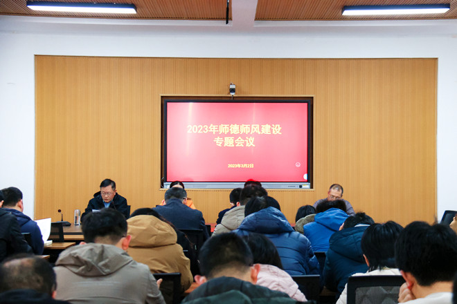 为进一步加强师德师风建设,筑牢师德底线,引导全体教师坚定理想信念、涵养高尚师德,展现高校教师新时代良好形象。3月2日下午,机电工程系在山润楼423会议室召开师德师风建设专题会议,系领导班子及全体教师参加会议。