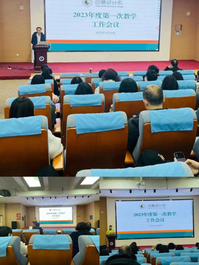 3月14日下午,创意设计系全体教师在地滋楼A区二楼报告厅召开2023年度第一次教学工作会议。系主任张永宾主持会议。