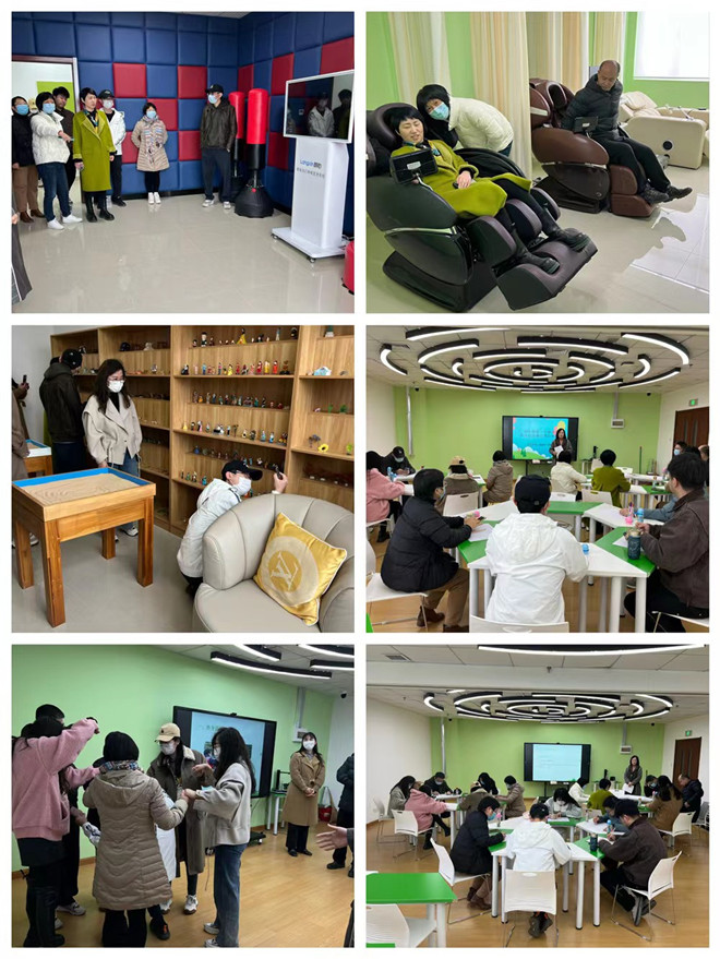 学生处(武装部)司申丽老师向老师们介绍了大学生心理健康教育中心的职能、专兼职心理咨询师、基本建设等情况,依次参观了团体辅导室、音乐放松室、情绪辅导室、正念心理室、个体咨询室内、团体沙盘室、预约等候室,详细讲解了各功能室的主要用途及使用方法。老师们尝试了击打情绪宣泄装置,躺在沙发上听音乐放松身心,真正体会到了调节情绪、释放压力的效果,对心理健康中心的工作有了更直观、更深入的认识。