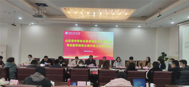 张永宾致欢迎词,对各位专家的到来表示欢迎和感谢。他回顾了2022年10月线上启动会议主要内容,传达了12月教育厅中职教学指导方案修订开发工作视频推进会会议精神,并结合2023年山东省职业教育工作要点对开发团队提出了三点要求:一是认真研究学习,坚持育人为本、德技并修,保证方案的科学性、规范性和指导性。二是态度科学务实,对接标准及岗位规范,开发出代表我省最高水平的新时代职业教育专业教学指导方案。三是积极认领下一阶段任务,保证参与时间,全心全力投入。