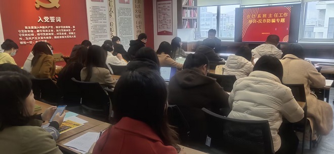 学工科科长刘婷对近期学校召开的安全工作会议要求进行传达,向班主任交流了防诈骗相关知识,要求全体辅导员和班主任要从学生实际出发,通过主题班会、交流谈话等多种方式对学生进行防诈骗安全宣传。特别是对会计系学生常见的刷单、平台贷款等常见骗局,要提升辨别能力和自我防范意识,远离诈骗。