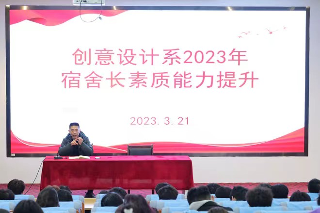 为进一步提高宿舍长队伍整体素质和工作能力,充分发挥公寓“四包”机制的重要作用,积极营造安全、文明、和谐的宿舍生活环境,创意设计系于3月21日下午在地滋楼A区报告厅举办春季学期宿舍长培训会,各年级宿舍长参加培训,本次培训由学工科、团总支周杨主持并担任主讲。