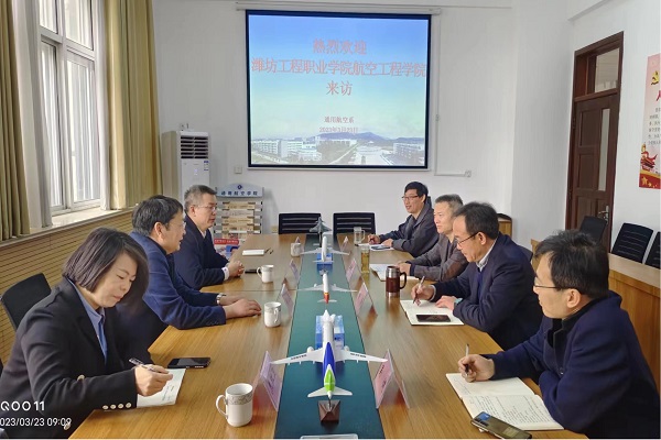 3月23日,潍坊工程职业学院航空工程学院院长隋立国、副院长焦红卫来我校交流访问。通用航空系党总支书记牟盛勇在和润楼B205会议室接待了来访客人,党总支副书记费涛、副主任孟凡收等参加交流。