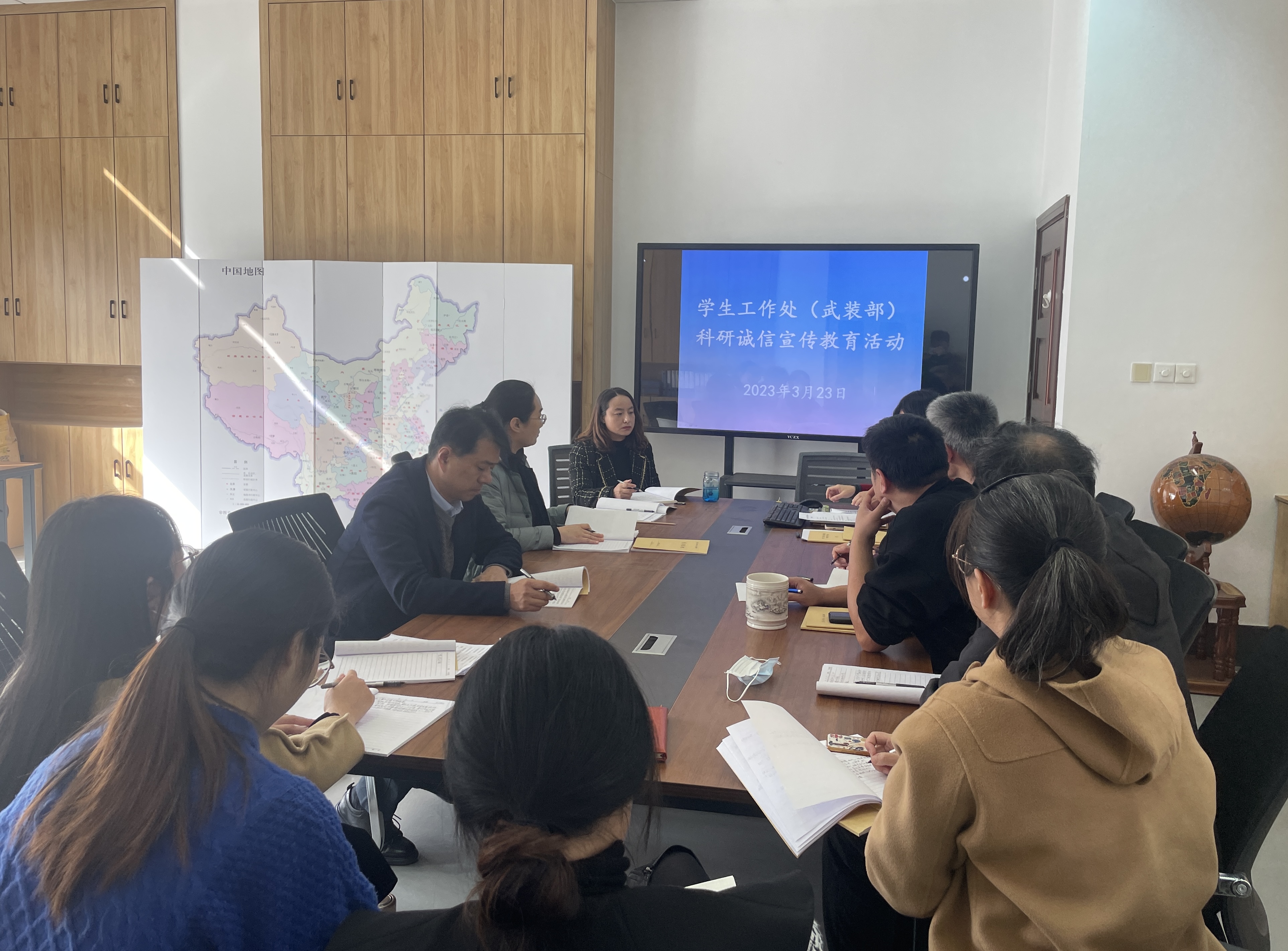 为进一步加强科研诚信建设,提升科学道德精神,明确学术规范标准,夯实学术规范理念,根据学校有关要求,3月23日下午,学生工作处(武装部)组织开展了科研诚信专题宣讲活动。