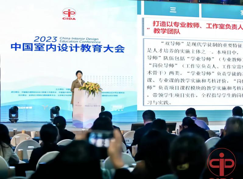 3月26日-28日,2023中国室内设计教育大会在北京召开。创意设计系环境艺术设计专业带头人高海燕应邀参加会议,并在会上进行“岗课赛证创”五位一体人才培养模式探索与实践的典型发言,受到与会专家和各兄弟院校的一致好评。同时作为35所室内设计“1+X”技能等级证书优秀试点院校之一,我校环境艺术设计教育教学成果在大会期间进行了展示。