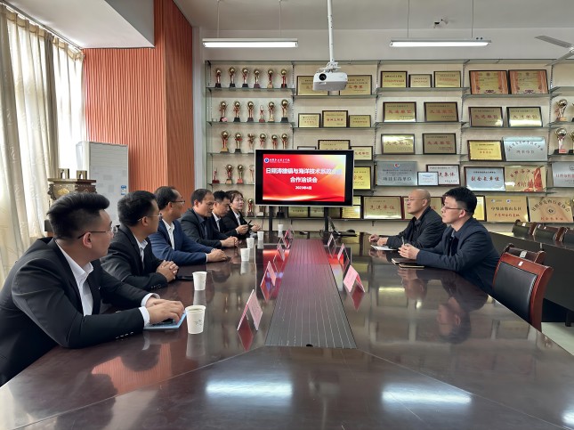 4月10日,涛雒镇党委副书记(挂职)刘继清、日照市众邦水产科技有限公司总经理滕富强等一行六人来校就科技成果转化、社会服务等内容进行合作交流,海洋技术系负责人黄贤刚、副主任朱庆伟及赵璐博士参加交流活动。