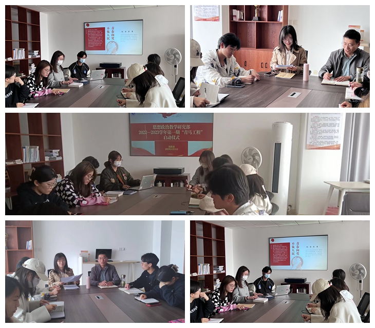 为强化班团学生干部团队建设、提高其管理及业务工作能力,思政部于4月11日下午在天润楼910会议室开展2023学年第一期“青马工程”培训班开班仪式,思政课教师王为法、马文杉及党务专业主要班团学生干部参加会议。