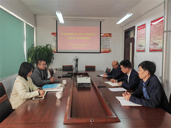 4月11日,中国海洋大学管理学院EDP培训中心主任马宏伟一行来我校访问。开放教育系主任丁明军、党总支书记安佰峰、副主任范忠勇接待来访客人。