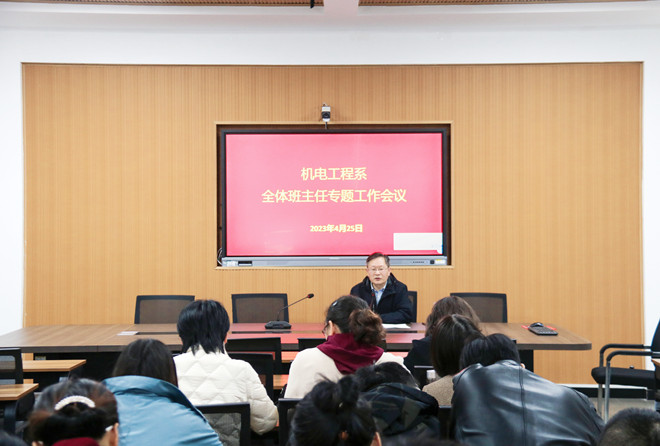 为进一步落实学校相关工作要求,扎实做好校园安全管理和学生安全教育工作,共筑校园安全防线。机电工程系于4月25日下午在山润楼423召开全系班主任工作会议。会议由系党总支副书记成元学主持。