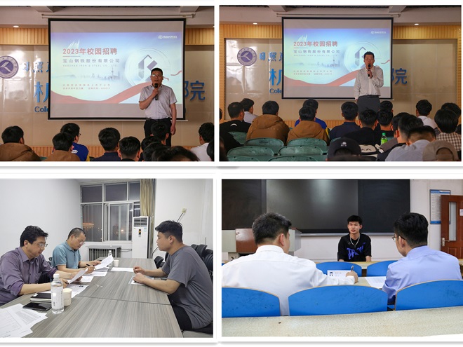 本次校园招聘是我校深入贯彻落实党中央、国务院关于高校毕业生就业工作的决策部署,积极响应教育部办公厅《关于开展全国高校书记校长访企拓岗促就业专项行动的通知》精神,助力我校毕业生实现高质量就业的深入实践,招聘前期我校与宝钢股份进行了深入的校企合作、产教融合等方面的沟通,为同学们争取到第一批优质就业岗位。招聘会现场,王思铭通过企业发展历程、企业产品、全球化布局、资源和技术优势、社会责任等方面向同学们介绍了“智慧宝钢”和“绿色宝钢”,同时对职业发展、福利待遇等向同学们做了详细的解答。通过前期全面的宣传动员,本次招聘活动得到了同学们广泛的关注,宣讲后机电工程系和现代汽车系近百名毕业生参加了企业面试。