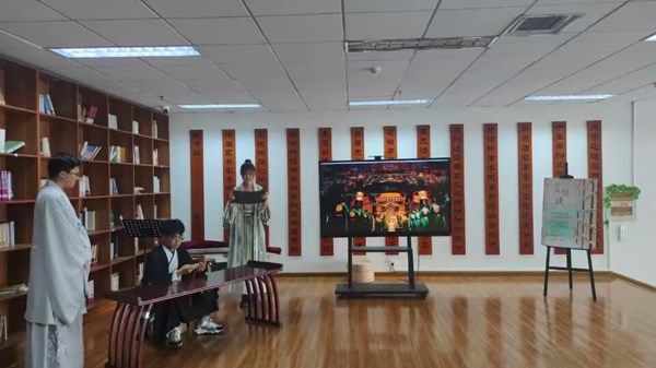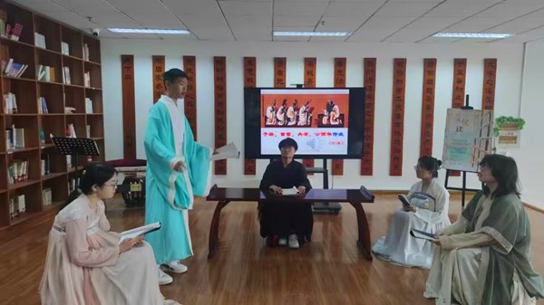 为加深读者对经典文学作品的理解和认识,营造浓厚的校园文化氛围,图书馆于5月18日在创意+美育共享空间国学区开展了以“剧从书中来”为主题的校园短剧展演活动。本次活动吸引了来自10多个系部的40余位同学热情参与。